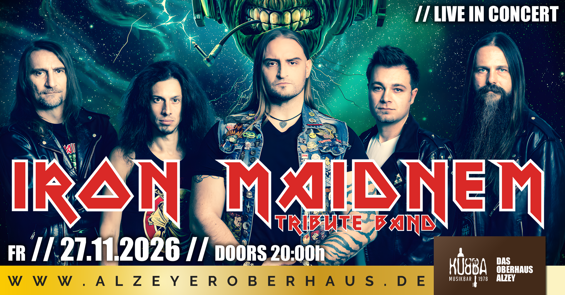 Die ungarische Iron Maiden Tribute Band „Iron Maidnem“ existiert bereits seit 1996. Ursprünglich als Hobbyprojekt gestartet war das Ziel der Bandmitglieder einfach nur im Proberaum ihre Lieblings-Iron Maiden-Songs nachzuspielen. Doch schnell kam es zu ersten Auftritten und die Band begann sich selbst und die Musik ernster zu nehmen. Man eignete sich die nötige Professionalität an und spielt inzwischen auf allen wichtigen Metal-Festivals in Ungarn.