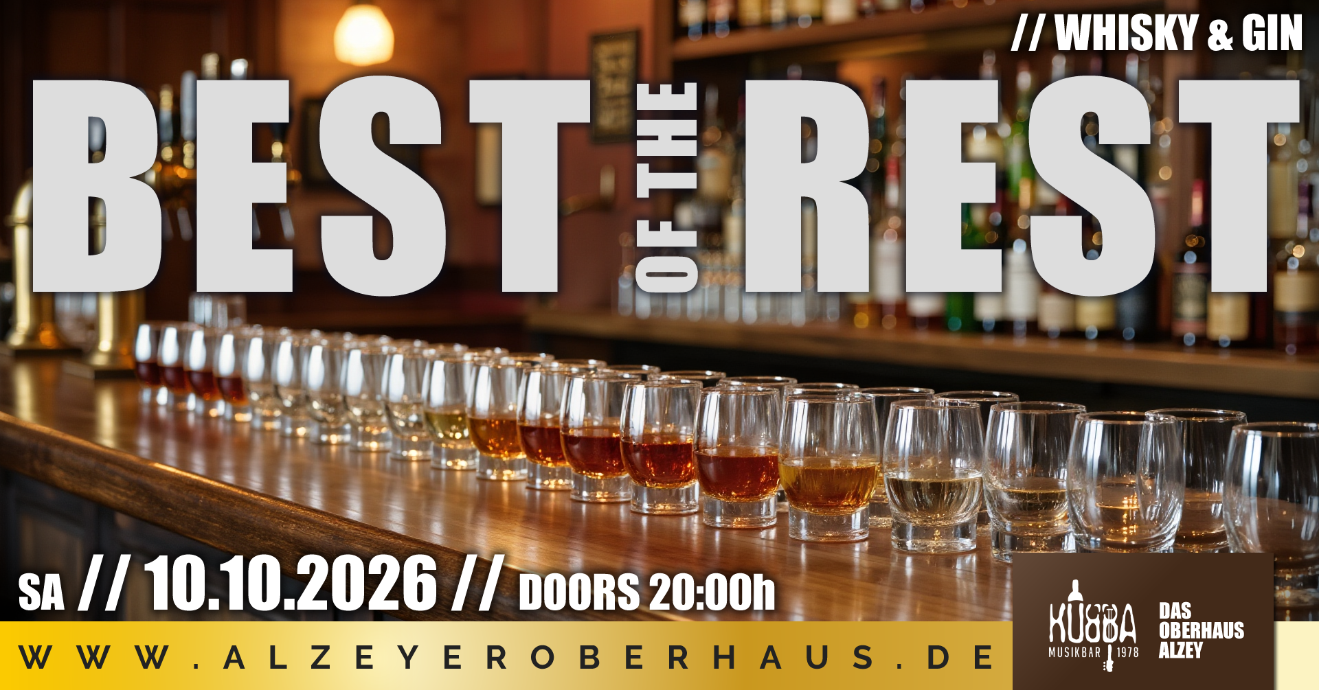 # Pfälzer Wald | die Kneipe "Kubba" Spiessgasse 4, Alzey, Rheinland-Pfalz, DeutschlandBest of the Rest – Ein Abend für Genießer im Alzeyer Oberhaus Mach dich bereit für einen außergewöhnlichen Abend, der dir seltene und edle Tropfen aus der Welt des Whiskys und Gins bietet! Bei Best of the Rest erwarten dich über 200 verschiedene Sorten aus aller Welt – von den Lowlands bis zu den Highlands, von Schottland bis Japan. Nationale und internationale Raritäten, die du schon immer mal probieren wolltest, stehen hier im Mittelpunkt. Ob ein Whisky, den es vielleicht…