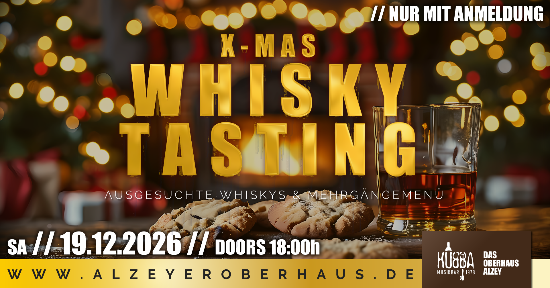 # Alzeyer Oberhaus Spiessgasse 4, Alzey, Rheinland-Pfalz, DeutschlandX-Mas Whisky Tasting im Oberhaus – Traditioneller Genuss in der Weihnachtszeit Freut euch im Dezember auf unser alljährliches X-Mas Whisky Tasting im Oberhaus! In gemütlicher, weihnachtlicher Atmosphäre präsentieren wir euch eine erlesene Auswahl an Whiskys, die perfekt zur festlichen Jahreszeit passen. Die sorgfältig ausgewählte Whisky Kollektion sowie das Menü wird spätestens zwei Monate vor dem Tasting auf unserer Homepage veröffentlicht. Genießt den vorweinachtlichen Abend mit besonderen Aromen und edlen Tropfen, die den kalten Winter vergessen lassen. Neben den ausgesuchten Whiskys…